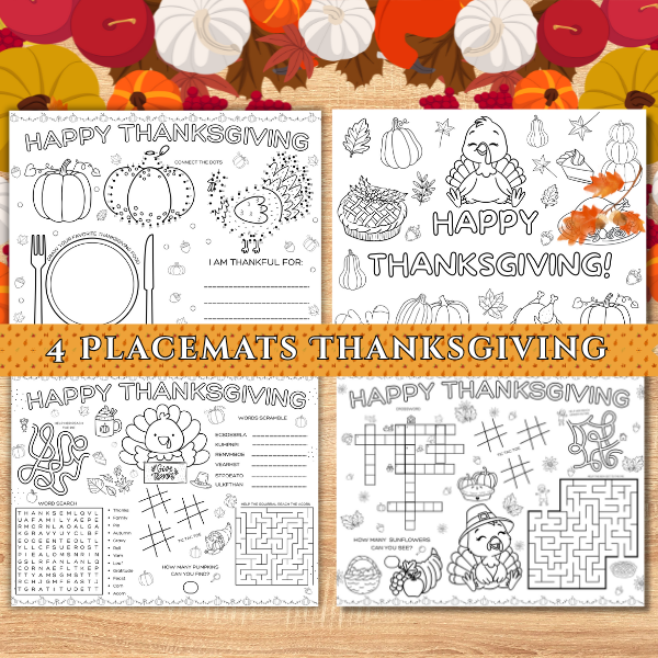 Thanksgiving Placemat Bundle For Kids
